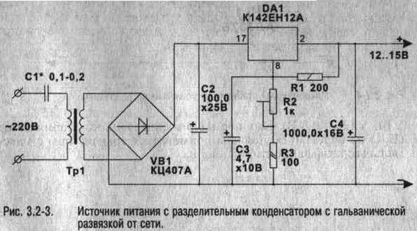 Источники питания с разделительными конденсаторами Главная -> Статьи -> Блоки питания, зарядные устройства -> Источники питания с разделительными конденсаторами