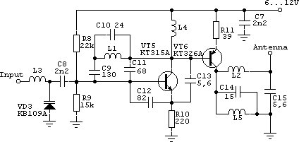 соответственно 4 и 22 витка пpовода ПЭЛ 0,6. Антенна - кусок провода