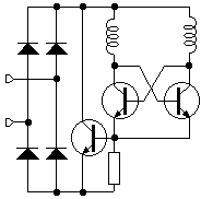 Катушки L1 и L2 содержат по 15 витков провода ПЭВ-0.3 на оправке диаметром 2.5мм. Конструктивно катушки должны располагаться рядом, параллельно друг другу. Выводы диодного моста следует пропустить сквозь катушки. Резистор R1 регулирует частоту передатчика. Он подбирается в пределах 0.1 - 1 кОм для установки нужной частоты. Следует заметить, что частота обратно зависима от протекающего через генератор тока