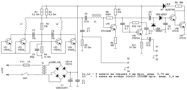 транзисторы VT1-VT4 необходимы радиаторы не менее 100 кв. см. на каждый,