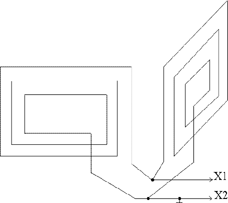 входу Х1/Х2 подключить две трехвитковые рамочные антенны. Начала и концы