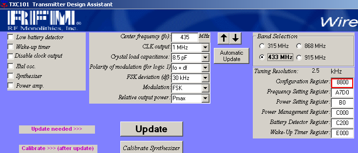 Таким образом при «подсказке» прграммы RFICDA можно знать, что заносить в память контроллера для работы передатчика на желаемой частоте.