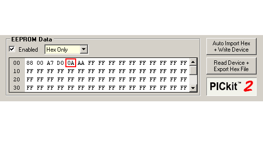 Следующий адрес энергонезависимой памяти контроллера занят числом 0А