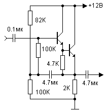 Из-за огромного входного сопротивления повторителей на составных транзисторах особенно остро встаёт о цепи смещения базы. Делать сопротивления порядка нескольких мегаом нельзя из-за температурной нестабильности и невозможности обеспечения необходимого тока базы. Поэтому во входном каскаде, как правило, используют полевой транзистор или следящую связь в цепи базы: