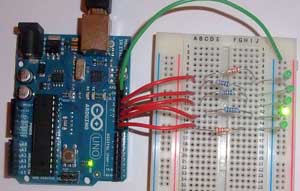 В этом уроке мы продолжим работу со светодиодами, но количество светодиодов увеличим до 5. И сделаем эффект бегущего огня. Для управления светодиодами будем использовать манипуляции с портами Arduino. Мы будем напрямую записывать данные в порты Arduino. Это лучше, чем работать с конкретными входами/выходами контроллера. Это позволит установить значения для светодиодов при помощи одной лишь операции.
