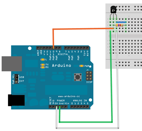 Датчик может запитываться двумя способами - внешним питанием (3 провода) или паразитным (питание от шины, 2 провода). Расписывать эти режимы не буду, все есть в документации. Отмечу лишь то, что в данном проекте мы будем использовать нормальное питание датчика.
