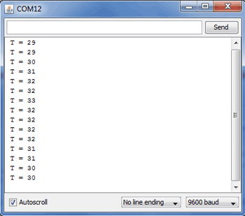 Рабочий скетч представлен ниже. Он взят из интернета, я лишь закомментировал лишние строки, чтобы на serial monitor выводилась только текущая температура.