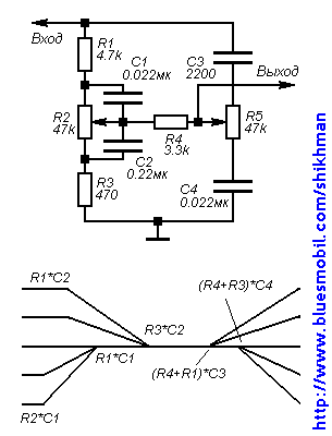 Пассивный регулятор тембра с изменяемыми частотами перегиба классический