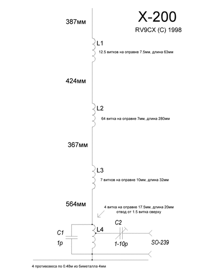 Первая такая антенна была изготовлена в конце 90х и даже до сих пор работает. X-200 Ниже представлена схема антенны: