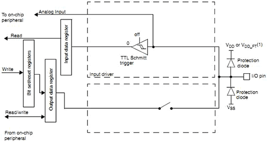 Порты микроконтроллера могут быть сконфигурированы как на вход, так и как на выход, причем каждый вывод порта настраивается индивидуально. Если вывод порта настроен как вход, то возможны следующие режимы его работы: