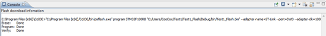 Попробуем прошить МК. В меню выбираем Flash->Program Download (или на панели инструментов щелкаем по соответствующей иконке) и видим, что МК успешно прошит: