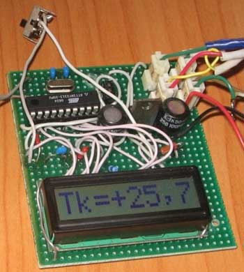Простой термометр для дома с двумя датчиками DS18B20 Главная -> Статьи -> Устройства на микроконтроллерах -> Простой термометр для дома с двумя датчиками DS18B20