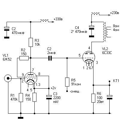 Рис. 1. Усилитель на лампе 6с33с (6с18с)