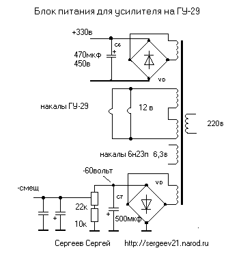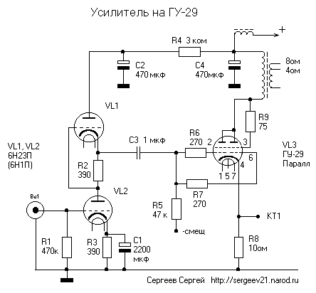 Однотактник на ГУ-29 на трансформаторах Прибоя Главная -> Статьи -> Ламповые усилители низкой частоты -> Однотактник на ГУ-29 на трансформаторах Прибоя