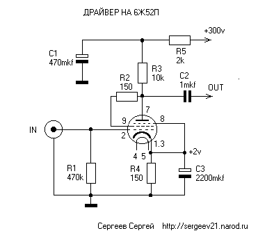 сопротивление=3,04ома. Драйвер на 6ж52п в триодном включении имеет большее усиление, больший ток. Коэффициент усиления-48. Исходя из этих замеров, каждый радиолюбитель сможет выбрать тот режим , который ему больше нравится. но трансы желательно перемотать или домотать первичку последовательно и вторичку параллельно. Есть еще вариант двухтактника. Трансы ПРИБОЯ пожалуй лучше подойдут.