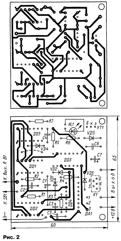 Чертеж платы представлен на рис. 2. На плате расположены все детали, кроме датчика В1.