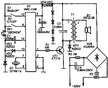 Музыкальный звонок на микросхемах серии УМС