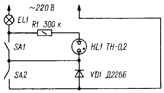 Неоновая лампа может быть типа ТН-0,2 или МН-6. В выключателе ее необходимо