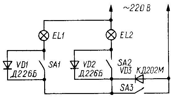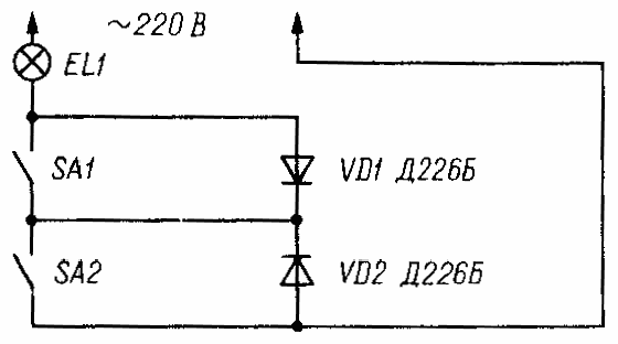 двухполюсный (двухклавишный) выключатель и кремниевый диод.