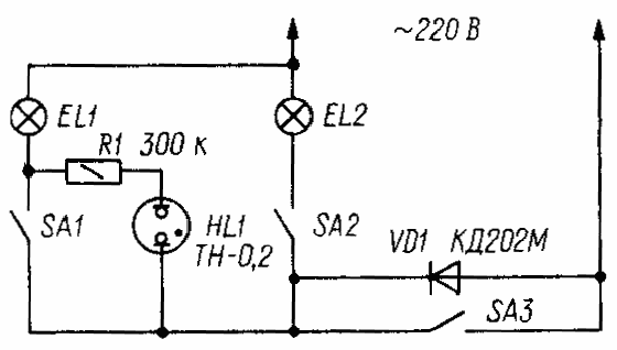 когда лампа EL1 горит вполнакала. Тогда пользуются только выключателем