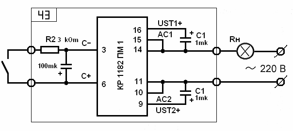 Регулятор мощности на микросхеме КР1182ПМ1 - еще одно решение задачи регулирования мощности высоковольтных мощных нагрузок. Устройство можно применять для плавного включения и выключения электрических ламп накаливания и изменения яркости свечения, для управления более мощными полупроводниковыми переключающими приборами, для регулирования частоты вращения электрических двигателей.