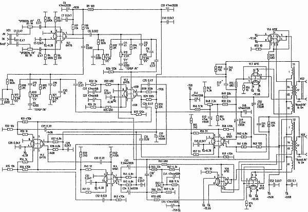 Ламповый УМЗЧ с глубокой ООС (Pвых = 80 Вт) Главная -> Статьи -> Ламповые усилители низкой частоты -> Ламповый УМЗЧ с глубокой ООС (Pвых = 80 Вт)