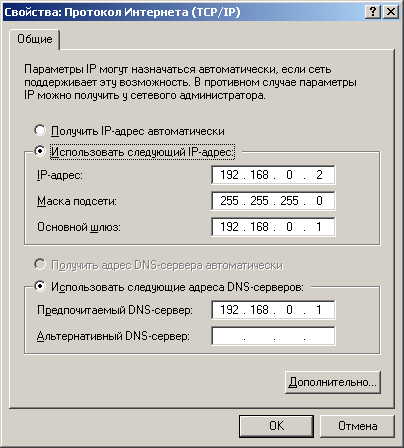 в качестве Основного шлюза и DNS сервера, вы получите доступ в глобальную сеть. Использование