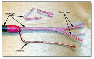 имеет 8 медных проводников, перевитых друг с другом, и хорошую плотную изоляцию
