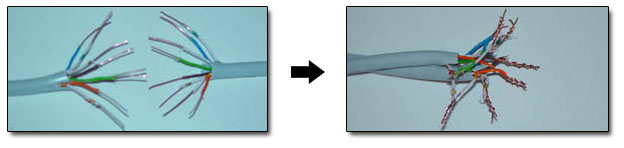 Если после проведения участок сети работает медленно или часто выдаёт ошибки, значит, вы либо недостаточно хорошо скрутили, либо плохо заизолировали поврежденный участок. Механическую нагрузку на скрутку можно уменьшить, если скрепить изолетной или нейлоновой стяжкой неповрежденные участки витой пары на 10 см слева и справа от восстановленного участка. В условиях улицы обычные нейлоновые стяжки утрачивают свои свойства в течение 1-2 лет, используйте только стяжки для использования на открытом воздухе, они обычно черного цвета. Точно так же можно соединять разные проводники, например П-296 и витую пару, или витую пару и телефонный провод. Недопустимо восстанавливать витую пару таким образом при использовании гигабитной аппаратуры, сеть при этом работать будет, но скорость связи значительно снизится, стоит использовать только как временную меру до приобретения замены на участок.