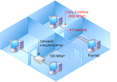 (до 2 Гбит), и абсолютно не подвержен помехам. Расстояние между системами, соединенными