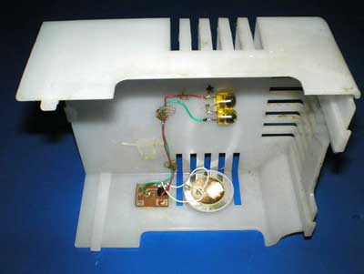 Сигнализатор монтируется на съемном плафоне внутреннего освещения камеры холодильника, включаемого автоматически при открывании двери. Фотодиоды приклеиваются клеем "Момент" на внутренней стороне плафона в месте расположения лампочки освещения. Соединение фотодиодов последовательное. Выводы питания подпаиваются тонким монтажным проводом и закрепляются на плафоне термоклеем. Из "музыкальной открытки" извлекается дисковый (часовой) элемент питания, он теперь не нужен, его роль выполняют фотодиоды. К освободившимся контактам подпаиваются провода от фотодиодов, соответственно плюс и минус. Музыкальная открытка так же закрепляется с помощью клея на поверхности плафона. Готовый плафон (см. рис.2) устанавливается на место, теперь при открывании двери холодильника одновременно с загоранием лампы подсвета будет раздаваться приятная мелодия. Поскольку холодильник открывается на непродолжительное время, столько же звучит и устройство. Если же дверь холодильника прикрыта неплотно, звук продолжается.