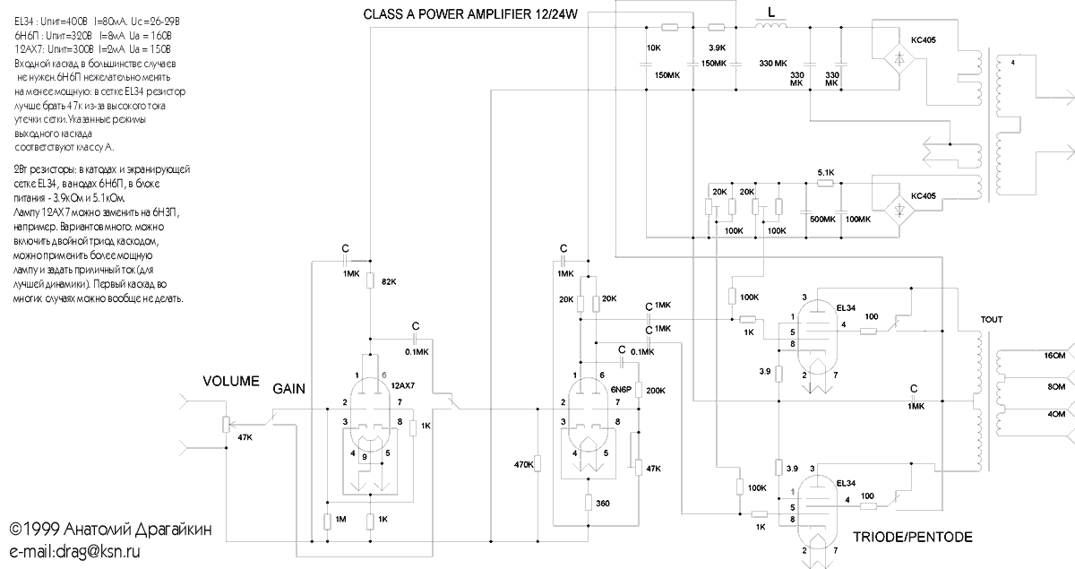 Однотактный, на 6П3С (макет усилителя класса SE)