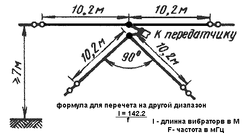 Сравнение этой антенны с полуволновым диполем, имеющим такую же высоту подвеса, показало, что она несколько уступает диполю при ближних связях , но существенно эффективнее его при дальних связях и при связях, осуществляемых с помощью земной волны.
