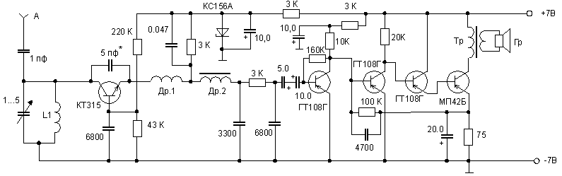 Приведенная ниже схема сверхрегенеративного приемника может работать как составная часть