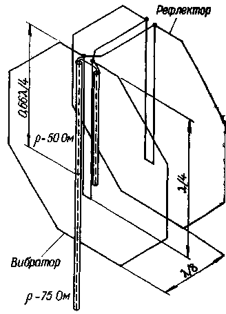 Доработка антенны сводится к соединению верхних точек крепления полупетель вибратора и рефлектора двупроводной воздушной симметричной перекрещивающейся линии передачи (см. рисунок). Ее можно выполнить из проводов диаметром 3- 4 мм, расположиенных на расстоянии 1,5...2 мм один отдругого. Перемычку на шлейфе рефлектора опускают вниз до получения четвертьволновой симметричной короткозамкнутой линии. Расстояние между рефлектором и вибратором должно быть равно L/8, периметр вибратора-1,04L; рефлектора - на 5% больше (1,09L). При активном рефлекторе входное сопротивление антенны снижается примерно до 30 Ом, поэтому соединительный кабель с волновым сопротивлением 75 Ом следует подключить через четвертьволновую несимметричную линию (трансформатор сопротивлений) в виде отрезка коаксиального кабеля с полиэтиленовой изоляцией с волновым сопротивлением 50 Ом длиной 0,66 L/4. ТРИФОНОВ А. (РАДИО 10/93)