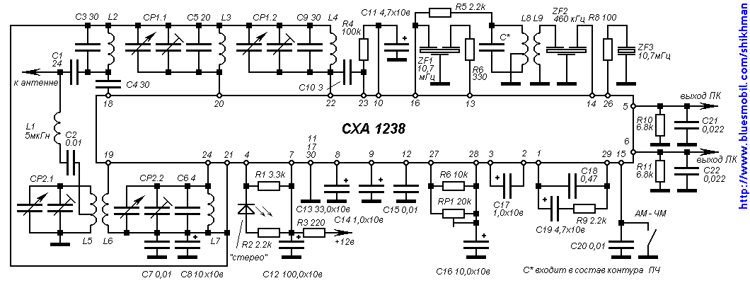 Тракт АМ ЧМ автомагнитолы на микросхеме СХА 1238