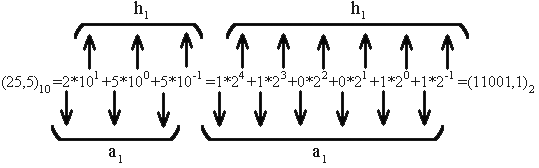 Вместо преобразования или передачи конкретных сигналов эти операции в устройствах цифровой техники могут быть выполнены над их кодами. При этом можно оперировать и аналоговыми сигналами, которые преобразуются в цифровые -с помощью АЦП. Таким образом, дискретное сообщение состоит из набора чисел и символов (например, знаков «+» и «-»). Каждое число состоит из цифр. Способ записи чисел цифровыми знаками называется системой счисления. В цифровой технике используются так называемые позиционные системы счисления [20, 32]. Значение каждой входящей в число цифры зависит от ее положения в записи числа. Количество различных цифр, применяемых в позиционной системе, называют основанием системы. В зависимости от основания, позиционные системы счисления могут быть десятичными – с основанием 10, двоичными – с основанием 2 и др. Образовании чисел я любой системе счисления производят следующим образом: фиксируют позиции, называемые разрядами; каждому разряду присваивают свой вес hi (где i номер разряда); hi=pi(p – основание системы); в разрядах размещают цифры ai Тогда любое число A может быть представлено в виде A=((n-1)∑(i=-1))a1h1 Здесь n – число знаков до запятой; m – число знаков после запятой. Последовательность цифр. an-1,an-2, ...., a1, a0, a-1, a-2, ..., a-m можно рассматривать как код числа в заданной системе счисления. В цифровой технике наибольшее распространение получила двоичная сиcтема счисления, содержащая только цифры 0 и 1, п ее основанием служит число 2. Например, число 25,5 в десятичной и двоичной системах счисления может быть представлено в виде