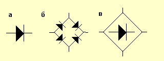 а) - простой диод. б) - диодный мост.