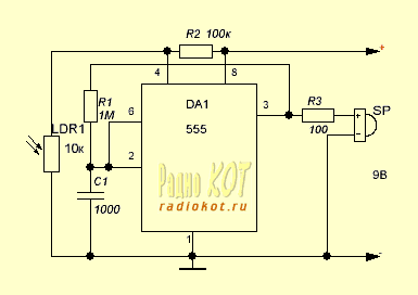 причинам станет вдруг темно. То есть, на фоторезистор LDR1 перестанет