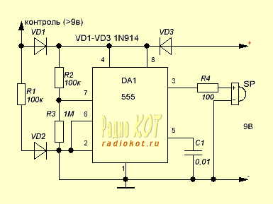 микросхемы можно кнопкой "Сброс". Схема 4: Аналогична Схеме 1, правда можно подстраивать частоту тона