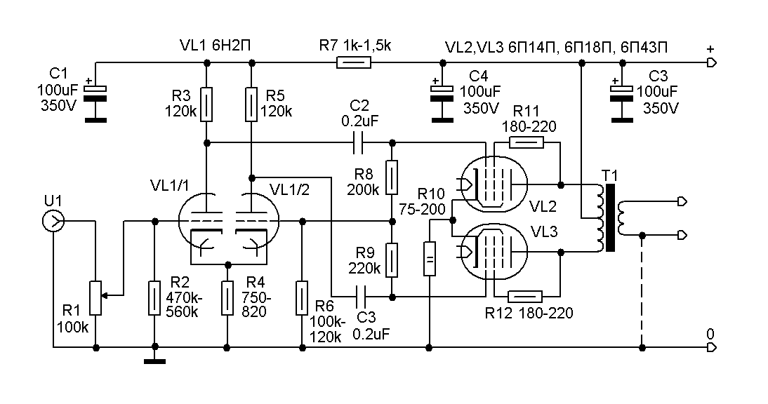 Двухтактный (РР) усилитель начального уровня Главная -> Статьи -> Ламповые усилители низкой частоты -> Двухтактный (РР) усилитель начального уровня