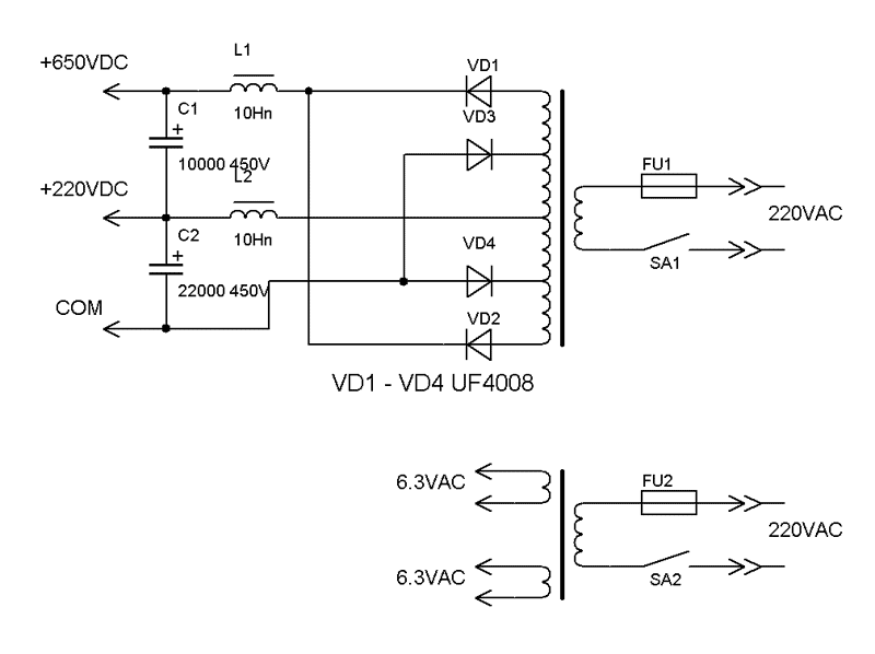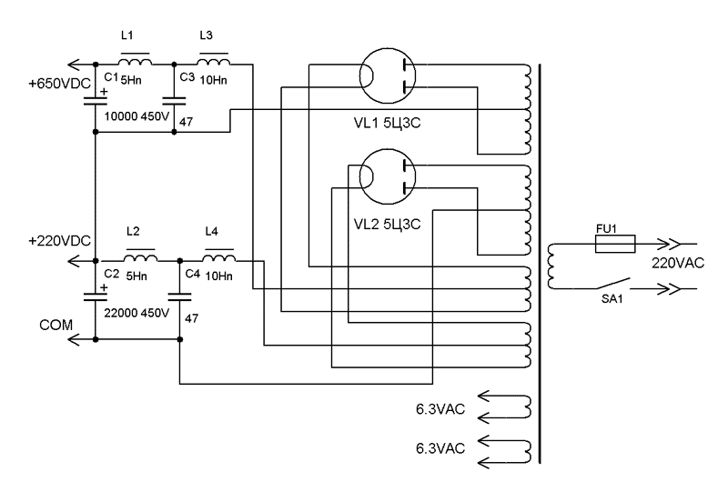 варианта блока питания, с применением кенотронов и