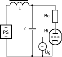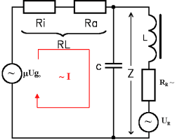 Величина выходной емкости фильтра также регламентируется величиной коэффициента частотных искажений. Ток, потребляемый однотактными каскадами, содержит кроме постоянной составляющей также и переменную составляющую, изменяющуюся с частотой сигнала, которая протекает по цепям источника питания. Из эквивалентной схемы (рисунок 14), полученной после преобразования схемы усилителя (рисунок 13), ясно видно, что источником переменной составляющей анодного тока является усилитель. На эквивалентной схеме лампа заменена генератором эквивалентной ЭДС - µUg, а выпрямитель заменен генератором переменного напряжения UR с сопротивлением потерь RR. Коэффициент частотных искажений определяется как отношение тока звуковых частот при наличии фильтра к току звуковых частот при отсутствии фильтра и всегда меньше 1: