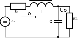 Это пример неудачного выбора элементов фильтра. Использование источника питания с таким фильтром может привести к ухудшению качества звука, особенно это будет заметно при питании двухтактного усилителя, работающего в классе “АВ”, для которого характерны скачки потребляемого тока. После выбора величин L и C фильтра необходимо проверить величину максимального тока Imax и напряжения Umax. Подключение источника питания к сети эквивалентно подключению LC цепи к источнику постоянного напряжения UIN (рисунок 16).