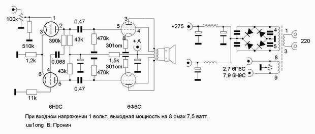 Двухтактный усилитель 6Н9С(6Н8С)+6Ф6С
