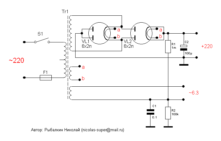 получилось порядка 6 кОм. Схема усилителя (один канал): Схема блока питания: