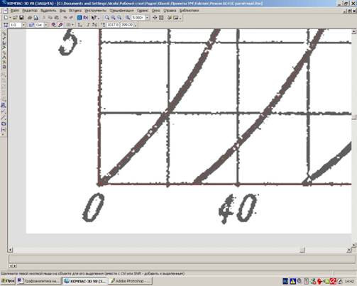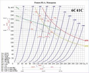 Исходным материалом для данных исследований является растровый файл, в достоверности которого вы не сомневаетесь. Первым шагом является приведение «картинки» в удобочитаемый вид, я это делаю с помощью программы PhotoShop. А именно: полезно увеличить контрастность, исправить угловые искажения картинки, если таковые имеются и, при необходимости, увеличить её размер. Следующий шаг – следует вставить полученный файл в файл «Фрагмента» или «Чертежа» программы «Компас». Для этого воспользуйтесь меню «Вставка», «Вставить рисунок из файла». При этом можно назначить и подходящий масштаб изображения. Оговорюсь сразу, что я намеренно отказался от использования программ векторизации графики и предпочитаю производить ручную обводку картинки, вставленной в векторный файл. Далее картинка «обводится» при помощи инструментов программы «Компас», после, чего растровое изображение удаляется. Следует напомнить, что при увеличении масштаба растрового файла толщина линий на изображении также увеличивается, толщина же векторных линий остается неизменной при масштабировании. Благодаря этому свойству и обеспечивается приемлемая точность векторизации, в самом деле, достаточно несложно провести линию, условно неимеющую толщины точно по оси растровой линии (рисунок 1). Рисунок 1 – Процесс векторизации растрового изображения При обводке растрового файла, следует уметь отличать полиграфический брак и специфику цифрового отображения исходного материала от, имеющей место реальной волнистости ВАХ-ов некоторых ламп. После удаления вставленного растрового файла, полученное векторное изображение, с целью удобства измерений, масштабируется с требуемыми коэффициентами по осям. При этом следует стремиться к тому, чтобы в одном миллиметре был один вольт, один миллиампер («Компас» - программа машиностроительная, поэтому результаты измерений получаются в миллиметрах). Далее – наносятся шкалы, единицы измерений, строится гипербола максимальной мощности, назначаются типы линий – и векторное изображение ВАХ-ов готово к использованию (рисунок 2). С этого момента – ошибки невозможны, ибо все они сделаны на предыдущем этапе. Система «Привязок» программы «Компас» - однозначно определяет точки пересечения и касания любых линий, поэтому точность измерений зависит лишь от параметров геометрического ядра программы (если мне не изменяет память точность до 32-го знака). Рисунок 2 – Результат графоаналитического исследования Все дальнейшие действия – полностью аналогичны «бумажной» графоаналитике, и описывать их нет смысла. Нужно лишь хорошо освоить «инструмент» (какую-либо САПР, не обязательно «Компас»).