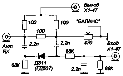 Высокочастотный мост, изображенный на рис.1, собирается по классической схеме и каких-либо особенностей не имеет. При подключении к нему генератора стандартных сигналов (ГСС) и "0"-индикатора получается обычный "АНТЕННОСКОП", весьма полезный в радиолюбительской практике прибор. Но, если к ВЧ-мосту подключить измеритель амплитудно-частотных характеристик (АЧХ), например, Х1-47 или ему подобный - восторг любителей возиться с согласованием антенн гарантирован.
