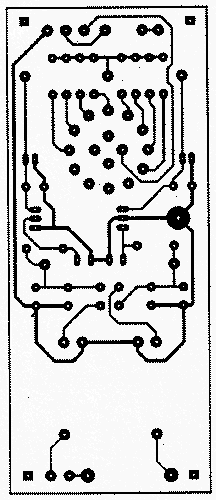 Рис. 1. Электрическая схема пробника (2 из 2}. ИзготовлениеРазводка печатной платы пробника и размещение радиодеталей показаны на рис. 2 и 3 соответственно. Внешний вид собранного пробника изображен на рис. 4. Для первых испытаний внешние переключатели SW3 и SW4 можно не подключать. Необходимые соединения осуществляются посредством проводов с зажимами. Сначала необходимо проконтролировать напряжение между контактами АР и А1 (примерно +11 В) и между контактами AN и А1 (-11 В), затем измерить два симметричных напряжения питания +5 В между GP и А1 и -5 В между GN и А1. После предварительной проверки можно подсоединить переключатель SW3 к контактам АР и АС, а переключатель SW4 - к контактам GP и GN.