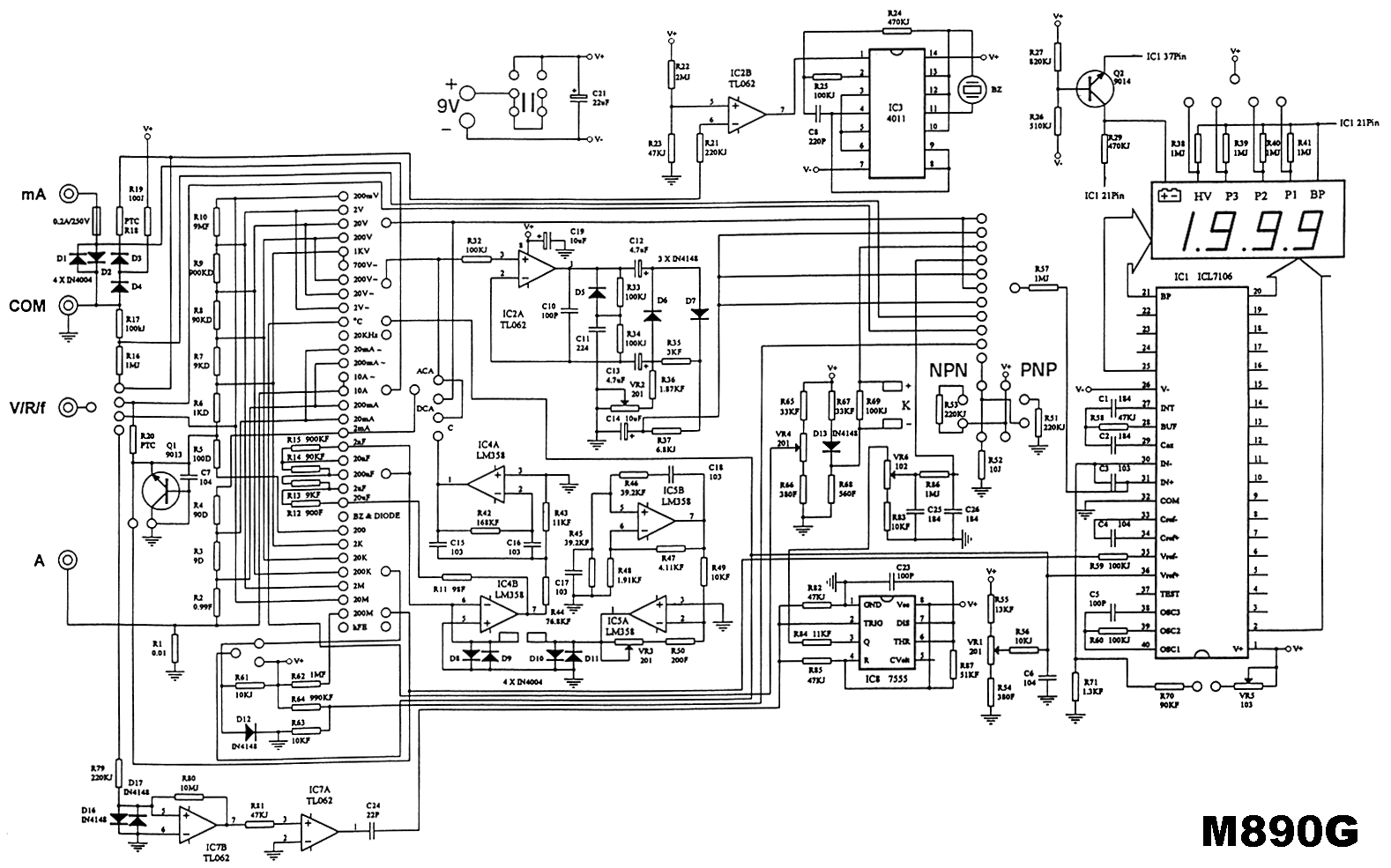 Описание: Мультиметр M890G - компактный, износостойкий, карманный, предназначен для контроля постоянного и переменного напряжения, постоянного тока, сопротивления, емкости, частоты, температуры, проверки диодов и транзисторов, прозвонка.